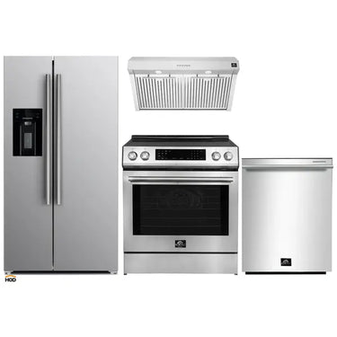 Forno 2-Piece Appliance Package - 30-Inch Espresso Electric Range & 31-Inch Refrigerator/Bottom Freezer in Black with Stainless Steel Handle