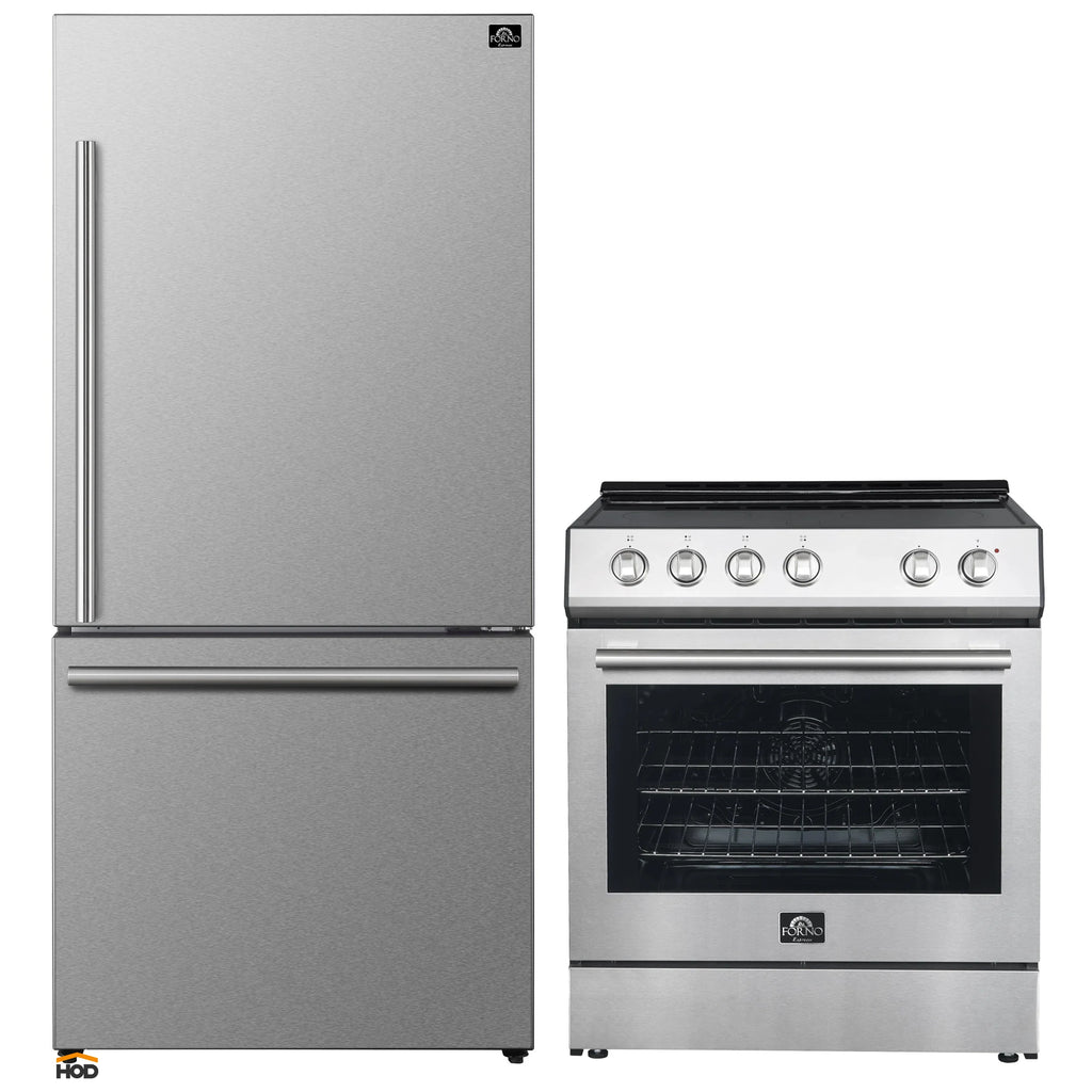 Introducing the FORNO 31" Milano Espresso Bottom Freezer Refrigerator that blends style and functionality seamlessly. Its compact 31" size and 17.2 cu ft capacity offer ample storage without compromising aesthetics. Two full-width freezer drawers optimize organization, while digital touch control ensures precise temperature settings and real-time monitoring. The fingerprint-resistant VCM door maintains a modern look effortlessly. Swift temperature adjustment with Super Cool and Super Freeze safeguards your groceries' quality. ENERGY STAR Certified for efficiency, and high-efficiency LED lighting reduces food spoilage. Adjustable features, including shelves, door bins, and a full-width crisper drawer, enhance user-friendliness. Upgrade your kitchen with style, convenience, and freshness!
