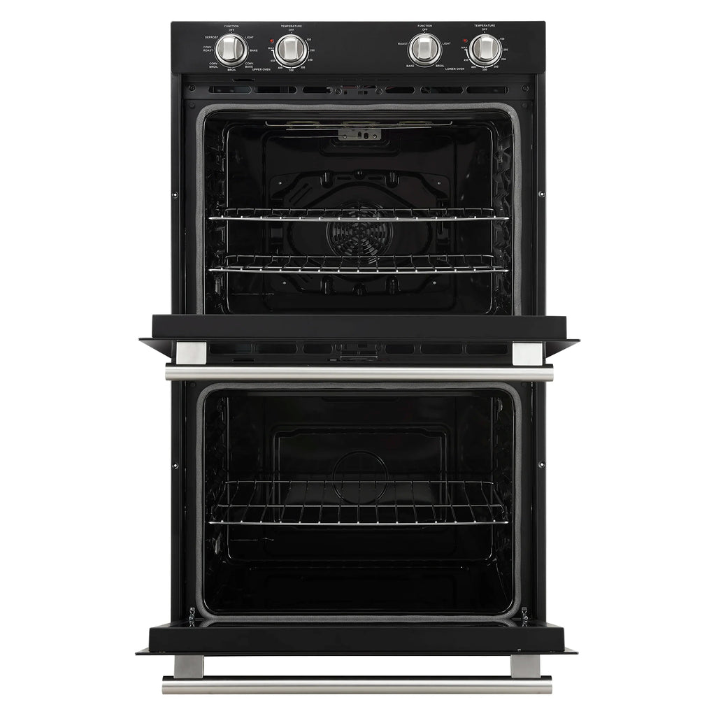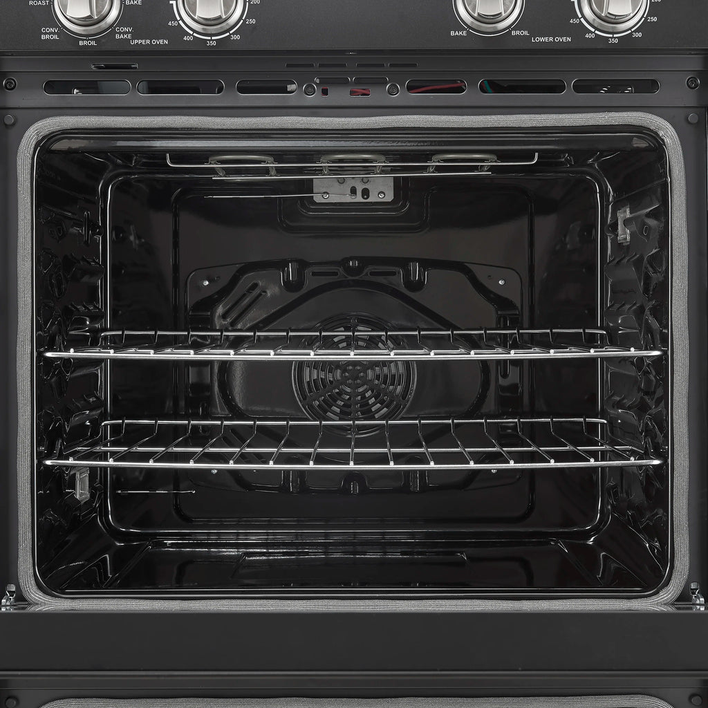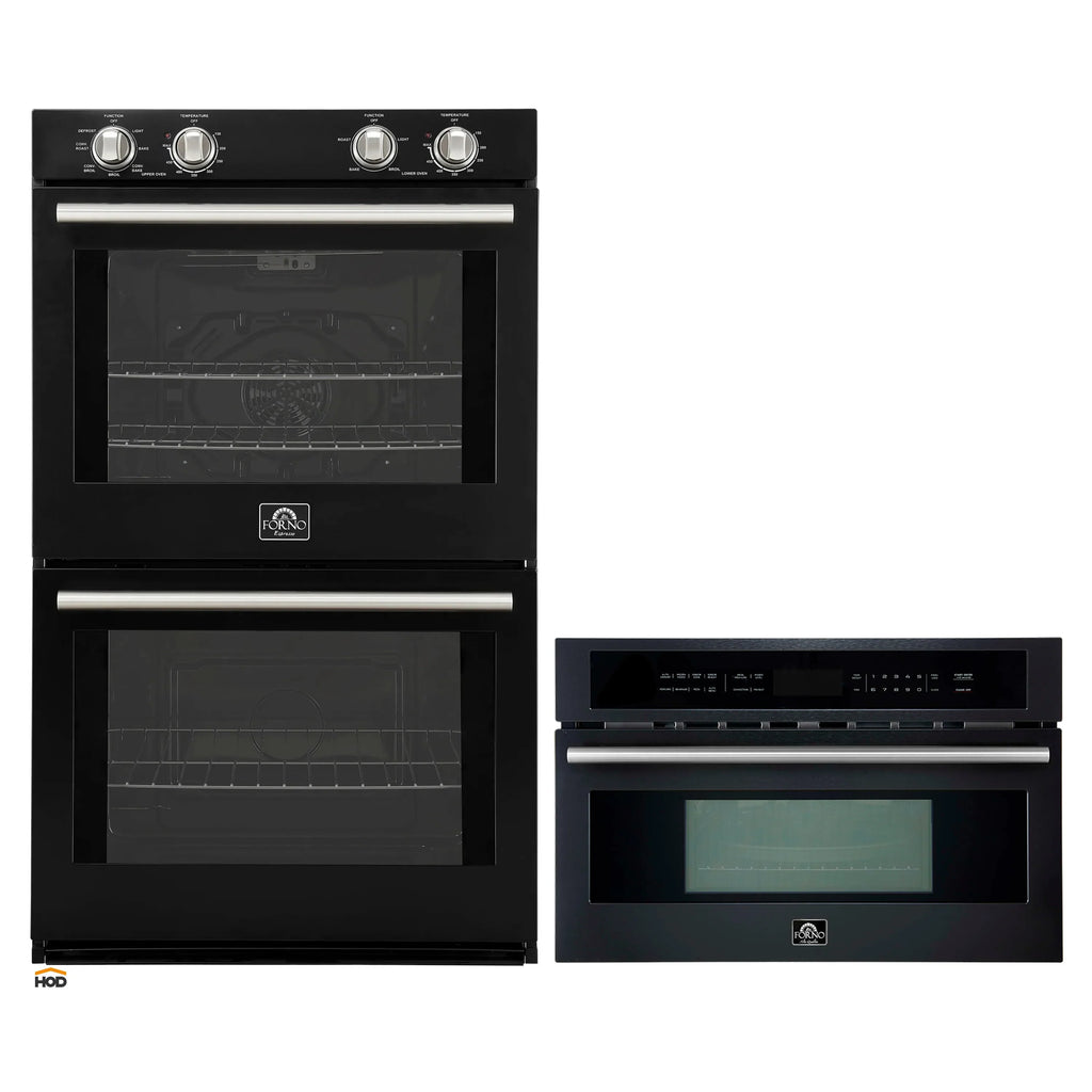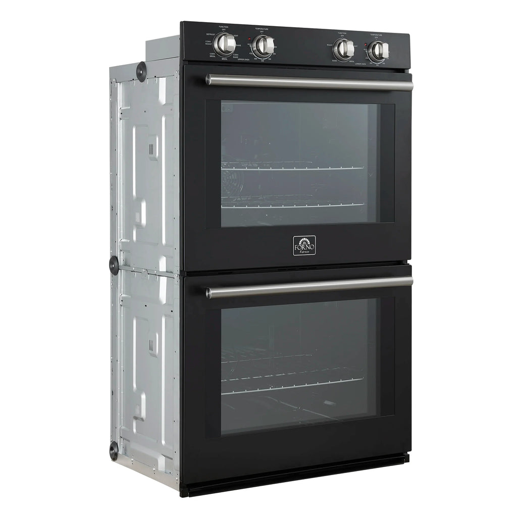 The Forno Vomero 30-Inch Double Wall Oven in Black is perfect for everything from weeknight meals to holiday feasts. With a total of 10 cu. ft., you can cook multiple dishes at once for big gatherings. The upper oven offers 6 versatile cooking modes: Bake, Convection Bake, Broil, Convection Broil, Convection Roast, and Defrost, with a 2000W broiler, 1500W bake element, and 50W convection fan for even, efficient heating. The lower oven, equipped with a 2000W broiler and 1500W bake element, is a traditional oven without a convection fan - ideal for classic roasting and baking.