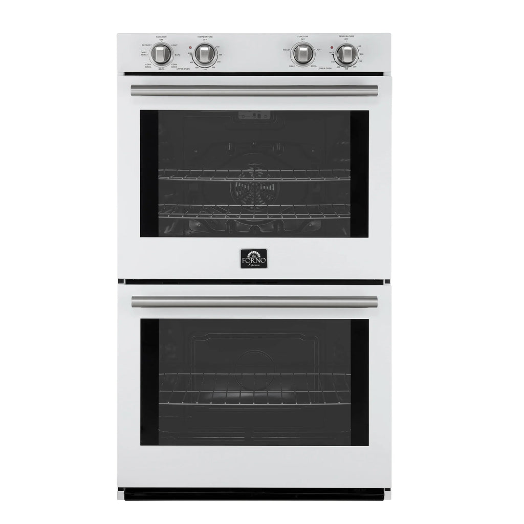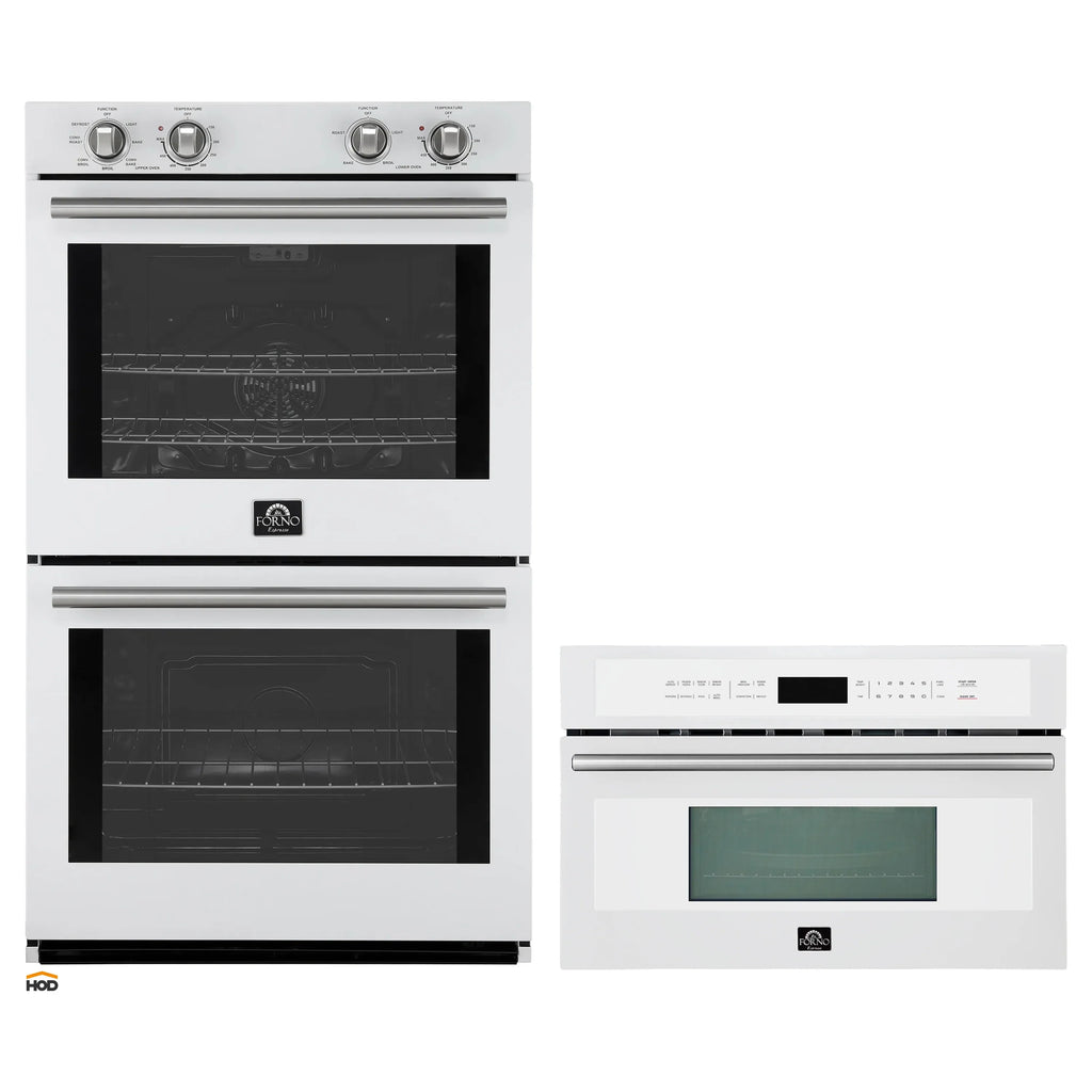 Forno 2-Piece Appliance Package - 30-Inch Vomero Double Wall Oven & 30-Inch Microwave Oven in White with Stainless Steel Handle