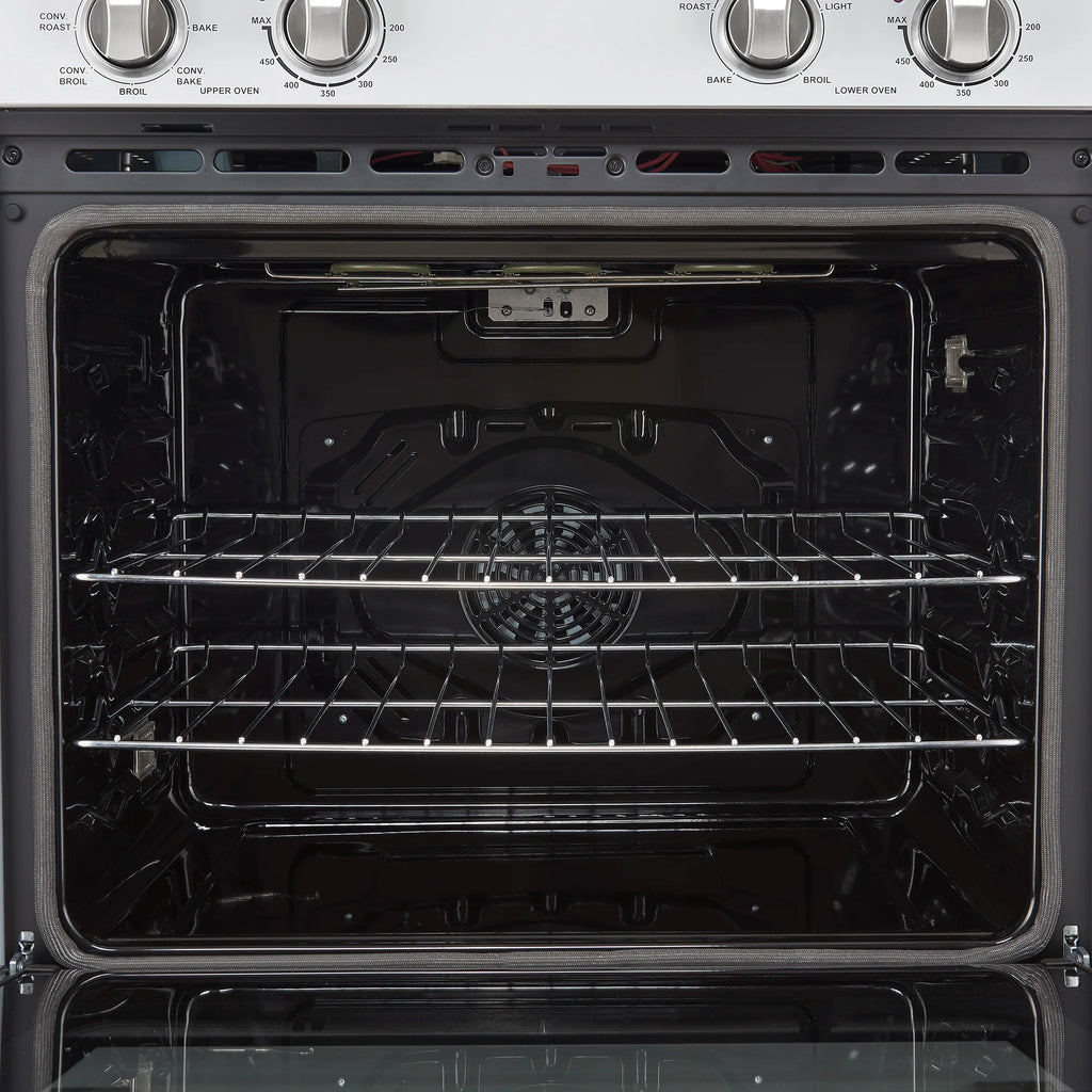 • With dual 5 cu.ft. ovens (10 cu.ft. total), cook multiple dishes at once, enhancing versatility and efficiency for seamless family meals and gatherings.