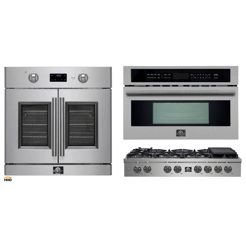 The Forno Oliena a stylish and practical 30-Inch 1.6 cu.ft. Microwave & Convection Oven. Its stainless-steel interior makes cleaning a breeze, while the easy-to-use controls let you seamlessly switch between microwave and oven functions. With 1,000 watts of cooking power, you can boil water in just 1 minute and 50 seconds using standard microwave settings.