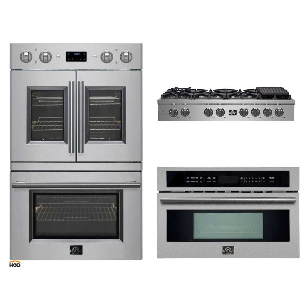 The Forno Oliena a stylish and practical 30-Inch 1.6 cu.ft. Microwave & Convection Oven. Its stainless-steel interior makes cleaning a breeze, while the easy-to-use controls let you seamlessly switch between microwave and oven functions. With 1,000 watts of cooking power, you can boil water in just 1 minute and 50 seconds using standard microwave settings.