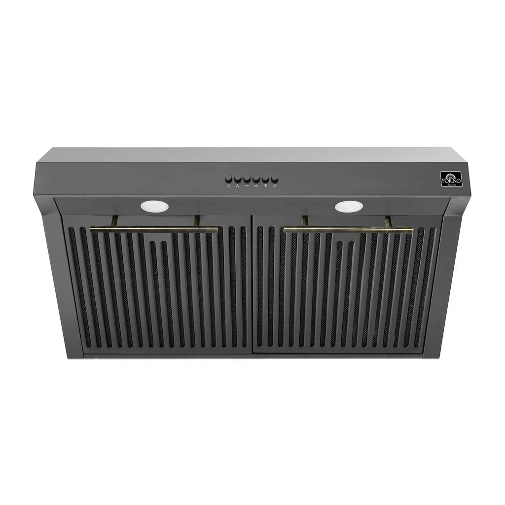 Forno presents the Bari 30” Espresso Range Hood, an exceptional under cabinet range hood that boasts an elegant stainless steel finish, adding a touch of sophistication to your kitchen space. With its powerful 420 CFM airflow, this range hood efficiently eliminates cooking odours, smoke, and airborne grease, ensuring a fresh and clean environment. The user-friendly 4 speed push button control allows you to adjust the ventilation settings effortlessly, providing optimal performance tailored to your needs. Illuminate your cooking area with two built-in LED surface lights, offering bright and even lighting for a delightful culinary experience. Equipped with a durable baffle and mesh filter, this range hood effectively traps grease and debris, ensuring easy maintenance and prolonging the lifespan of the appliance. Upgrade your kitchen with the versatile and high-performing under cabinet range hood from Forno, where style meets functionality.