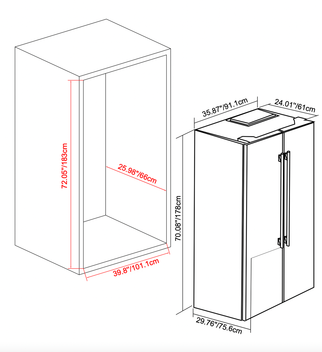 | Cutout dimensions W x D x H (inch) | 40 x 32 x 73 |