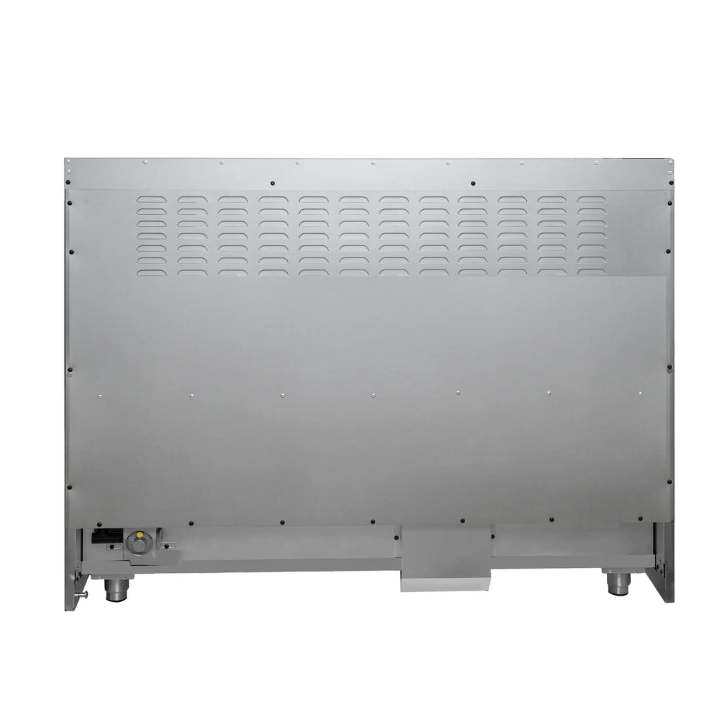 The Forno Galiano 48" Dual Fuel Range in sleek black with antique brass knobs and handles brings bold elegance and professional performance to your kitchen. Eight sealed burners produce 107,000 BTU, including a versatile 20,000 BTU dual-ring burner for simmering at 1,000 BTU. Dual ovens provide 6.58 cu.ft. total capacity: the 4.32 cu.ft. true convection oven with 6,300-watt output ensures consistent results, while the 2.26 cu.ft. secondary oven with 3,400 watts adds flexibility. Black enamel interiors simplify cleaning, while friction hinges and 3-layer glass doors enhance durability and safety. Includes 4 racks, griddle, LP conversion kit, and NEMA 14-50P power cord. Forno’s 2-year in-house warranty guarantees peace of mind.