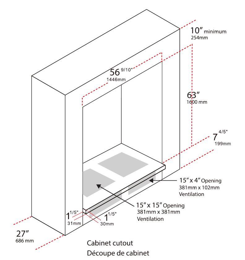 | Cutout dimensions W x D x H (inch) | 57 x 28.2 x 71 |