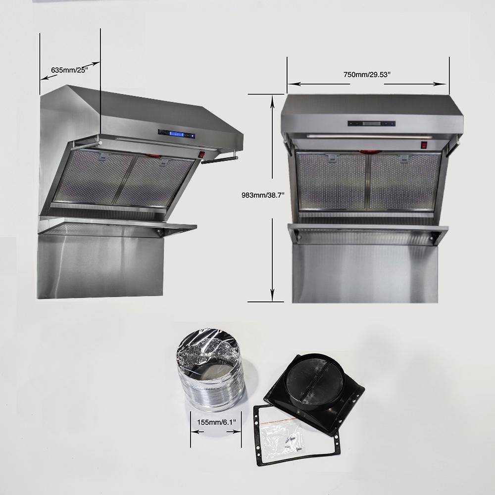 This 30 Inch Savona wall mount range hood by Forno helps create a durable, all stainless steel design. A quiet high-efficiency 600 CFM of ventilation power. The hybrid mesh filtration system reduces odors and maximizes filtration effectiveness. Designed to be user-friendly to remove, and totally submersible, these filters go right into the dishwasher for the ultimate in easy clean. With versatile fan settings, you can adjust the capture speed based on your cooking needs. Includes upper level warming rack, heated via an Infra-red bulb to keep your food and dishes warm. Dual utensil hangers are perfect for keeping your most frequently used tools at hand or to display your pans. All Forno products are backed by an iron clad 2-year warranty for your satisfaction. Skip the high price tags without sacrificing quality and performance. Lower the cost of living with Forno.