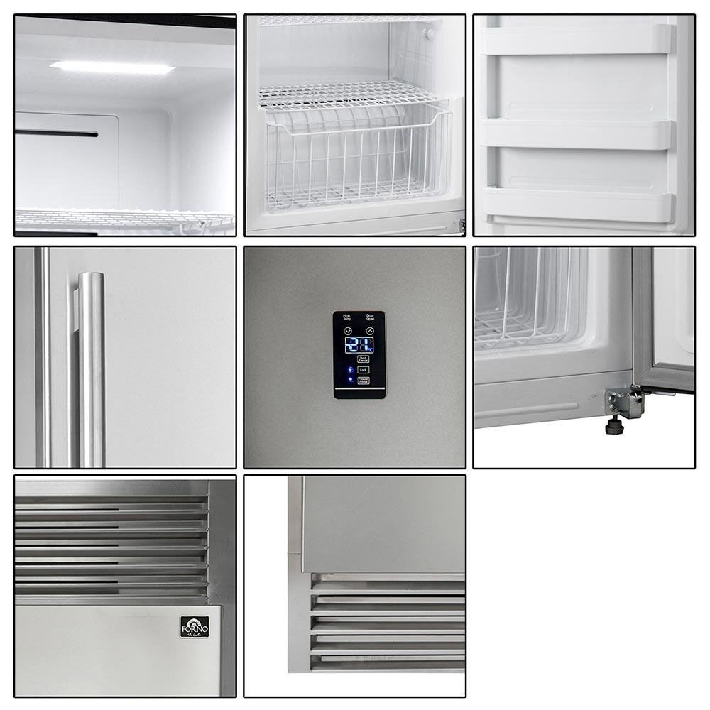 This 27.6 cu.ft. Refrigerator/Freezer Combo Unit is the perfect size for any kitchen, allowing you to store all of your refrigerated and frozen items. It features interchangeable refrigerator/freezer zones that make it easy to customize the temperature settings according to your needs. The Electronic Control feature allows you to easily adjust the temperature settings on the refrigerator or freezer with just a few simple clicks. The control has F to C temp conversion with LED readout of current setting and actual temp. Adjustable levelling legs feature allows you to easily accommodate and adjust the legs to tailor the refrigerator's height to fit your needs. The Door Ajar Alarm feature of this refrigerator will alert you if one of the doors is accidentally left open, preventing energy waste and food spoilage. All Forno refrigerators are backed by an iron clad 2-year warranty for your satisfaction and an E-star energy rating. Skip the high price tags without sacrificing quality and performance. Lower the cost of living with Forno.