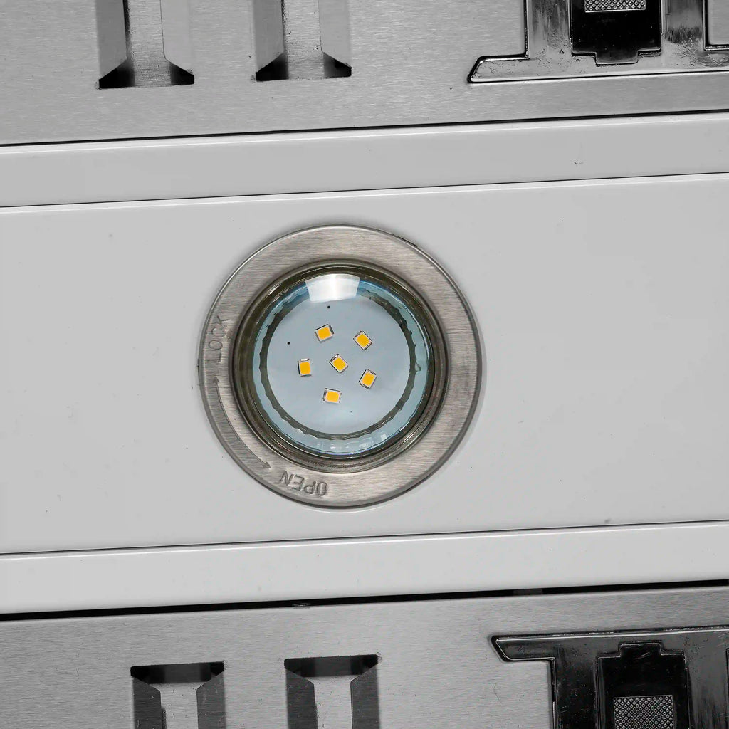 This 36 Inch Wall-Mounted Range Hood is designed for high-performance kitchen ventilation. With a powerful 1200 CFM motor and 4-speed fan control, it removes smoke, grease, and cooking odors. Choose between external venting or ductless recirculating installation to suit your kitchen layout. The vertical upward air discharge ensures efficient airflow, while features like automatic shut-off, a built-in timer, and removable charcoal filters make it convenient to use and maintain. The included chimney extension kit and decorative crown molding allow for a custom, built-in look. Quiet operation at just 68 dB with built-in lighting for better visibility while cooking.