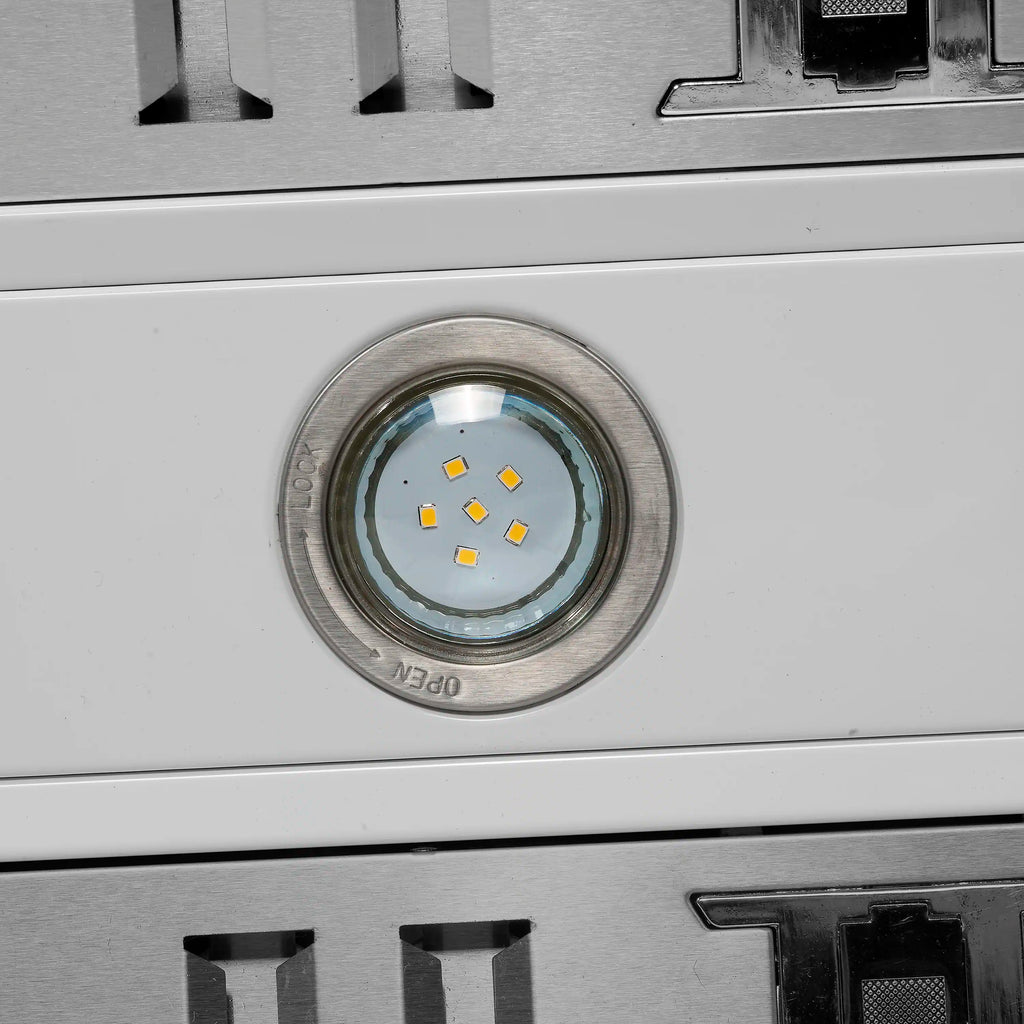This 48 Inch Wall-Mounted Range Hood is designed for high-performance kitchen ventilation. With a powerful 1200 CFM motor and 4-speed fan control, it removes smoke, grease, and cooking odors. Choose between external venting or ductless recirculating installation to suit your kitchen layout. The vertical upward air discharge ensures efficient airflow, while features like automatic shut-off, a built-in timer, and removable charcoal filters make it convenient to use and maintain. The included chimney extension kit and decorative crown molding allow for a custom, built-in look. Quiet operation at just 68 dB with built-in lighting for better visibility while cooking.