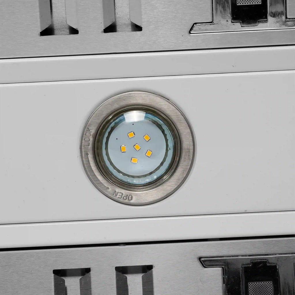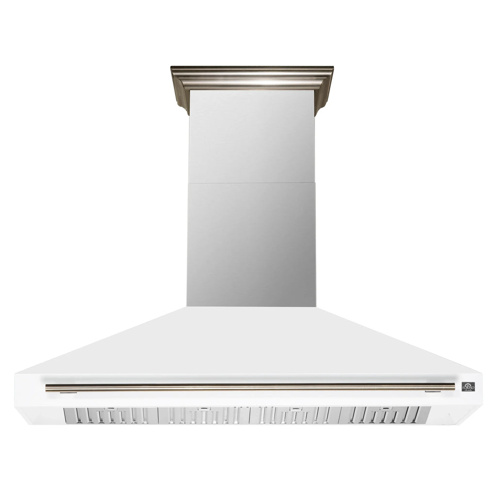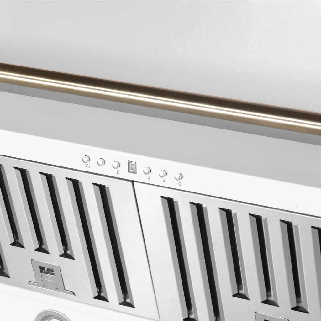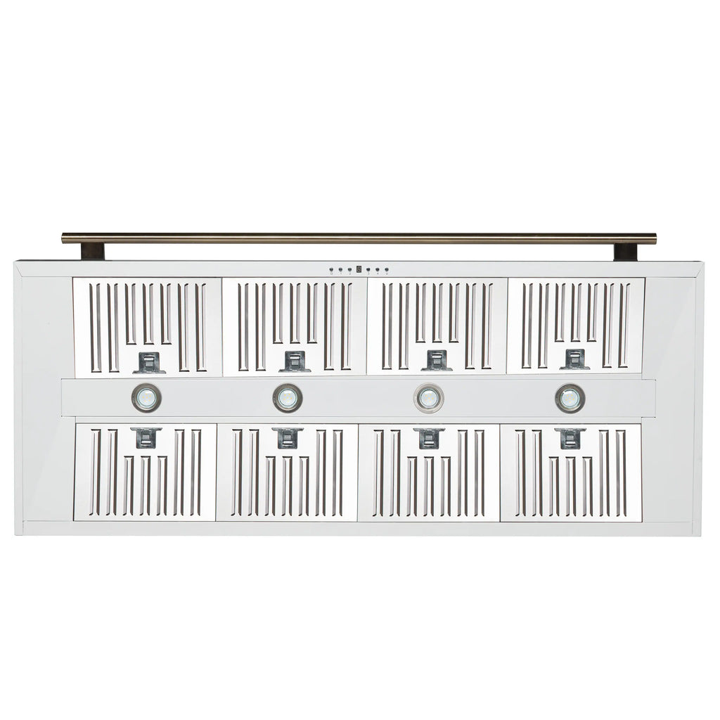 This 60 Inch Wall-Mounted Range Hood in white is designed for high-performance kitchen ventilation. With a powerful 1200 CFM motor and 4-speed fan control, it removes smoke, grease, and cooking odors. Choose between external venting or ductless recirculating installation to suit your kitchen layout. The vertical upward air discharge ensures efficient airflow, while features like automatic shut-off, a built-in timer, and removable charcoal filters make it convenient to use and maintain. The included chimney extension kit and decorative crown molding allow for a custom, built-in look. Quiet operation at just 68 dB with built-in lighting for better visibility while cooking.