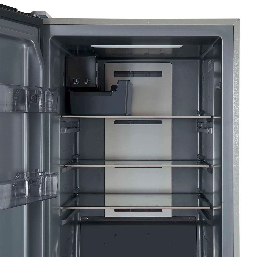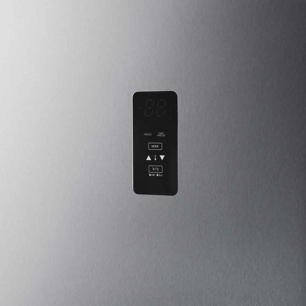The Forno Fortezza 28 Inch Left-Swing Freezer has Total No Frost cooling and an Energy Star certification, keeping interior temperatures steady without manual defrosting. Inside, you'll find adjustable shelving, door storage, and a galvanized steel-coated interior for long-lasting performance. The digital control panel offers precise temperature settings from -24°C to -14°C, while the Fast Freeze function locks in freshness quickly. An automatic filtered ice maker delivers crescent-shaped cubes on demand.