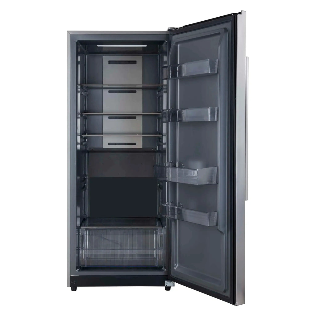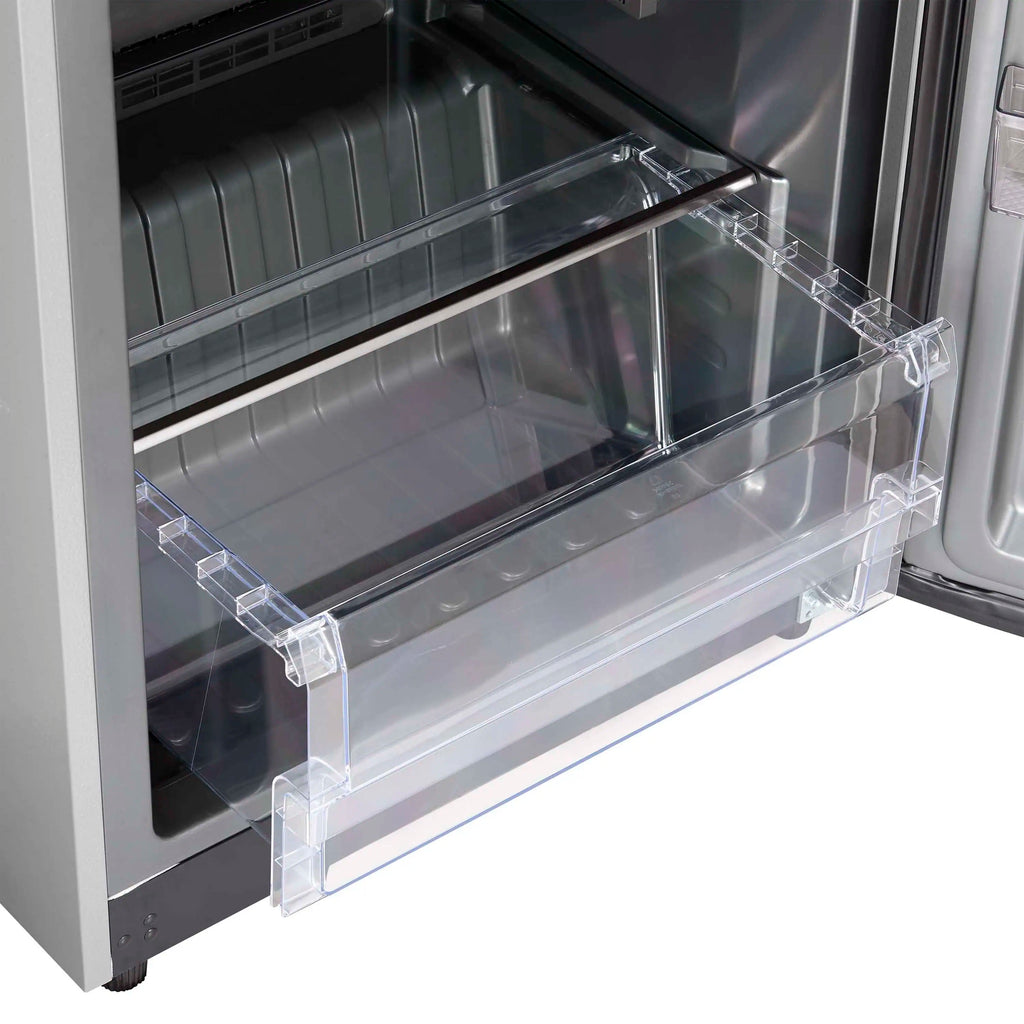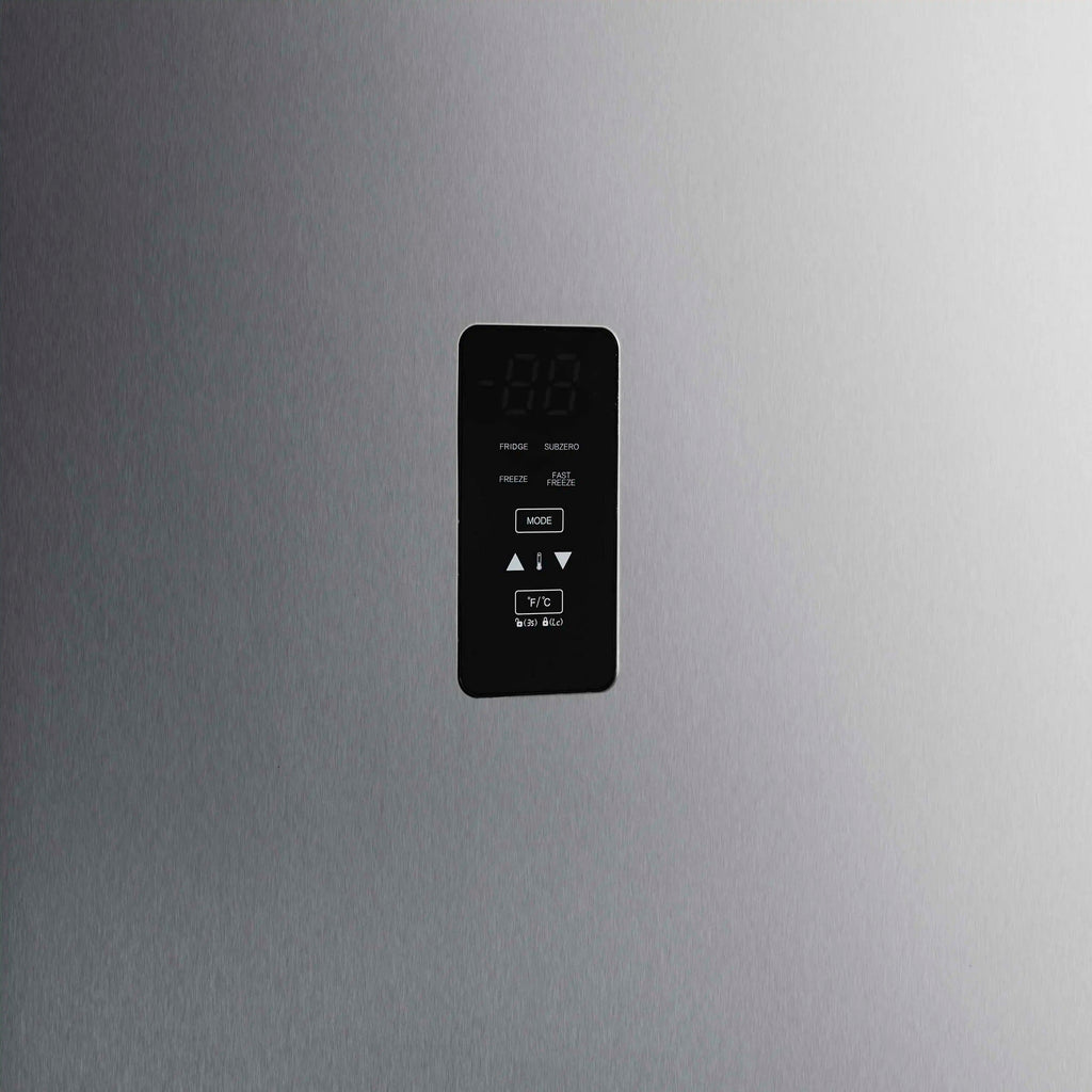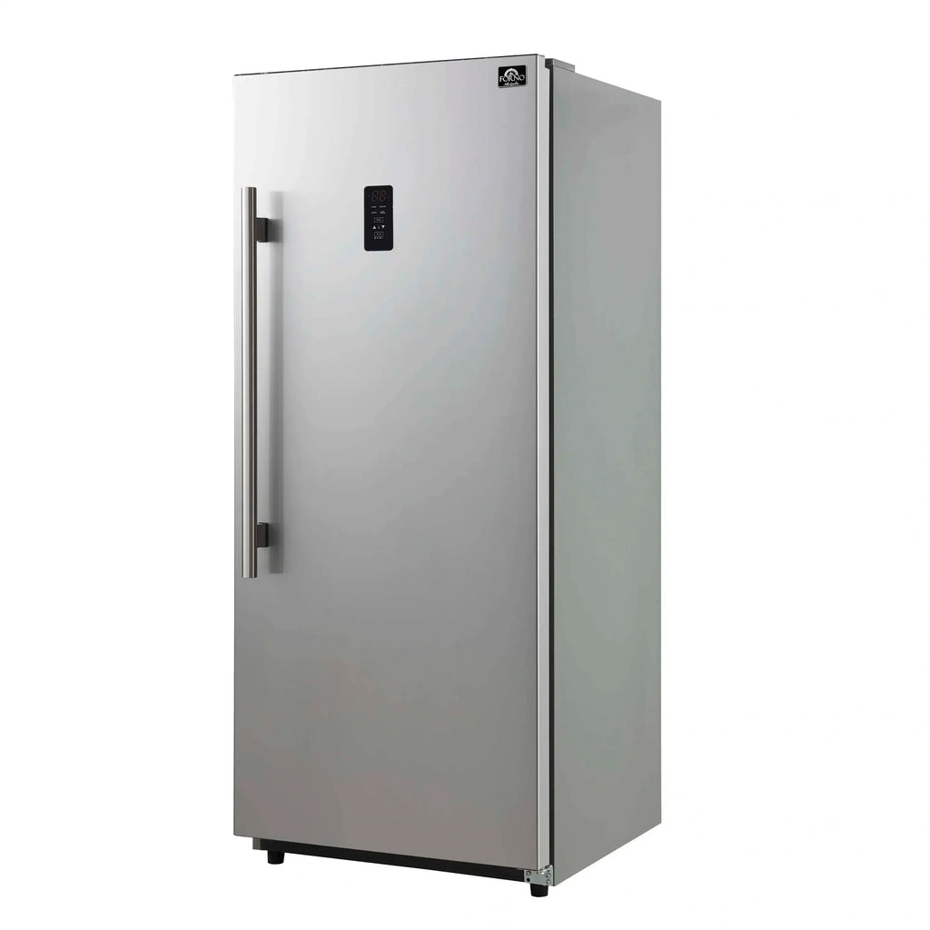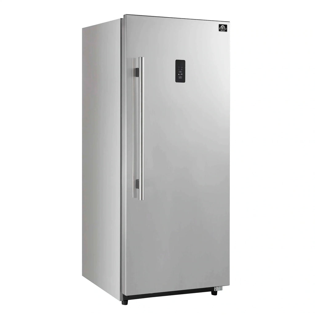 The Forno Fortezza 28 Inch Right-Swing Convertible Refrigertor/Freezer gives you flexible cold storage as either a refrigerator or a freezer. With Total No Frost cooling and a digital control panel, it keeps temperatures consistent without ice buildup. When used as a freezer, it ranges from -24°C to -14°C; in refrigerator mode, it holds a steady 0°C to 8°C. Adjustable shelving, door storage, and a galvanized steel-coated interior offer flexibility and durability. With counter-depth dimensions and a stainless steel finish, it’s a clean, modern fit for any kitchen.
