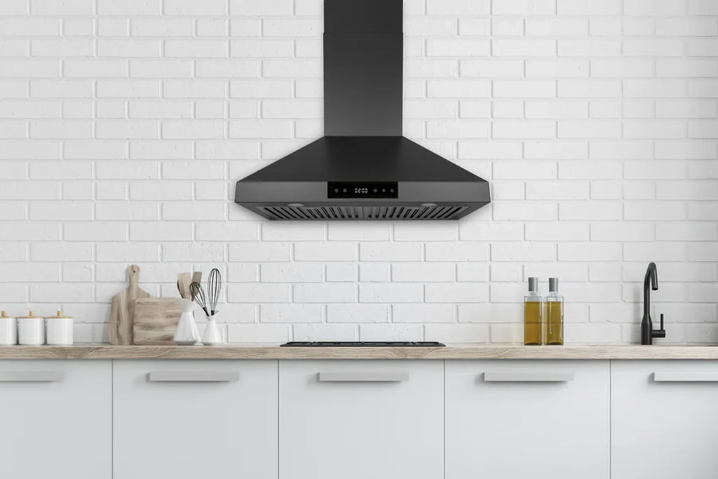 Practical, powerful, and built for home chefs. The Hauslane WM-538 wall-mount range hood delivers strong 860 CFM suction with six fan speeds and easy touch-screen control. Power Control Technology™ lets you cap airflow to meet local requirements, while the optional remote control offers ADA-accessible operation. Enjoy energy-saving LED lights, dishwasher-safe baffle filters, and auto delay shut-off, all in a convertible design with an extendable chimney for flexible installation. Extendable chimney (CHE001) and charcoal filters (CFI001) sold separately.