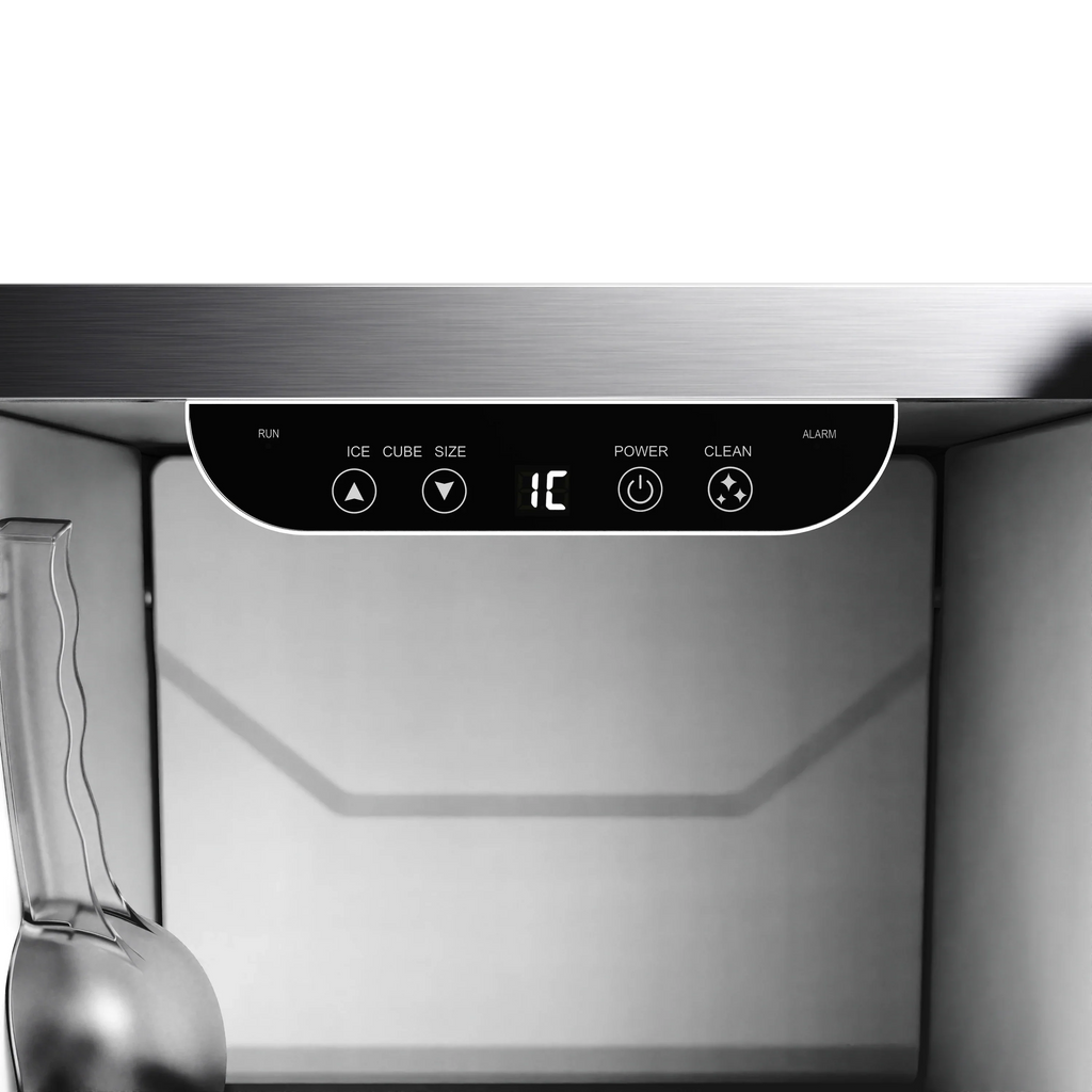 This unit delivers impressive performance with an ice production capacity of up to 68 lbs per day and a storage capacity of 26 lbs, ensuring a steady supply of ice at all times. Built for both indoor and outdoor use, it adapts easily to various environments, and the reversible door adds further flexibility to accommodate different layouts. For clean, great-tasting ice, the in-line water filter efficiently removes impurities and includes a convenient 6-month replacement reminder. Additional user-friendly features include Sabbath Mode, which disables lights and alarms for uninterrupted operation, and simple button controls with a clear LED display, allowing you to easily monitor status and alerts.