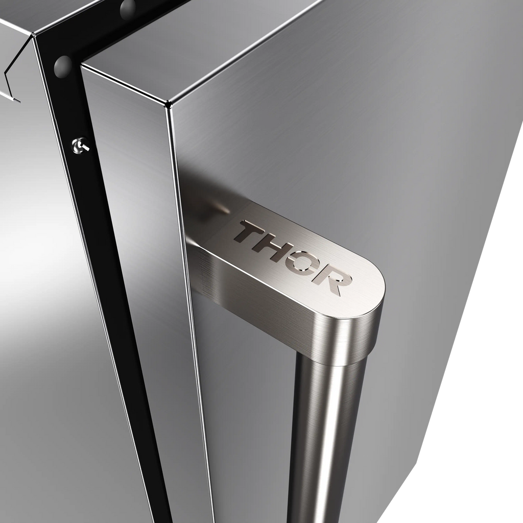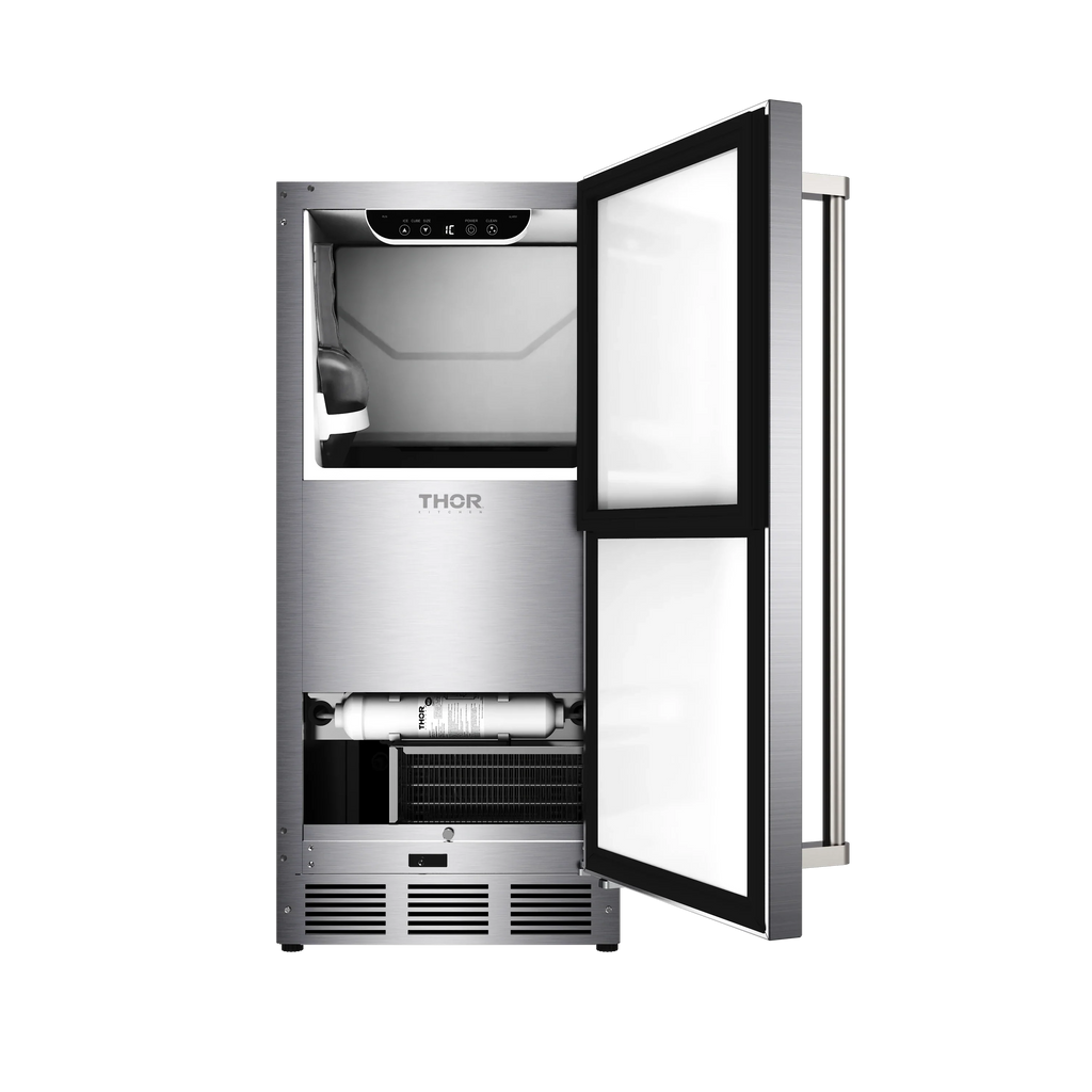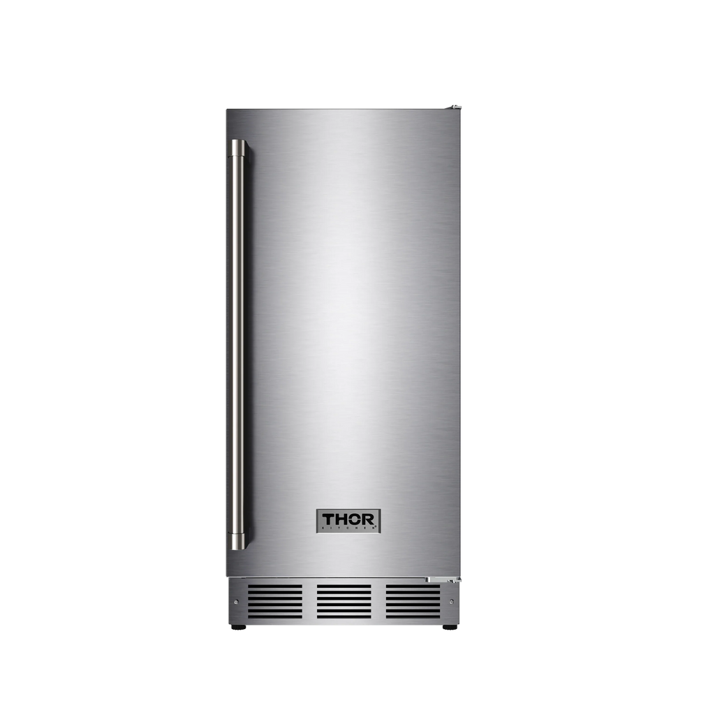 The Thor Kitchen 15-Inch Indoor Outdoor Ice Maker with Drain Pump (TIM1511) is a powerful, versatile solution for both residential and commercial needs. Designed for seamless integration, its zero clearance hinge enhances kitchen aesthetics while the built-in pump offers flexibility in installation, making setup simple in a wide range of locations.