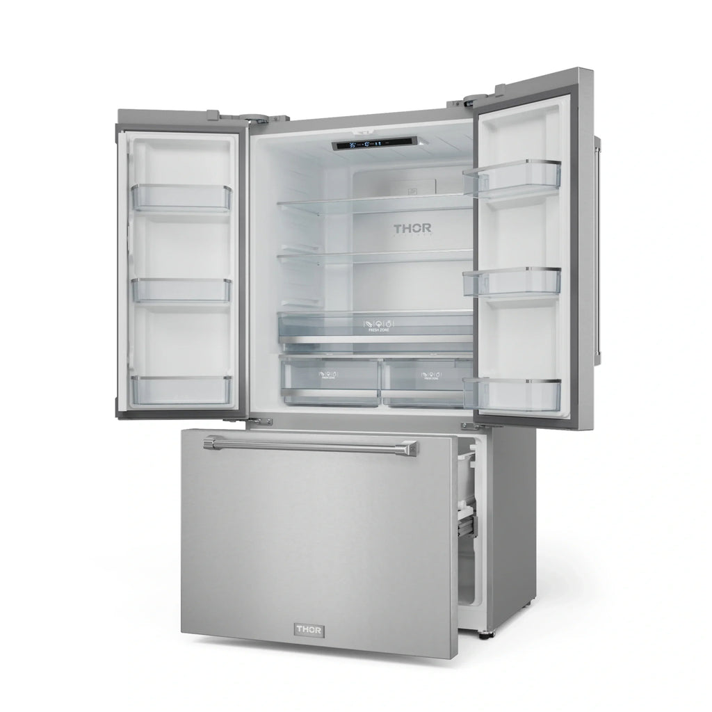 Experience superior freshness with the 36 Inch 20.3 cu ft French Door Counter Depth Refrigerator in Stainless Steel. With advanced cooling technology, spacious interiors, and customizable features, this refrigerator ensures your ingredients stay at peak freshness. Designed for durability and efficiency, it brings top-tier performance and style to your kitchen.