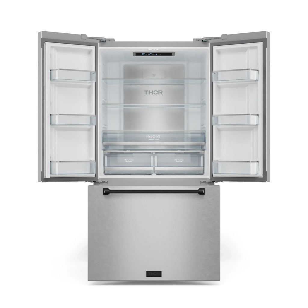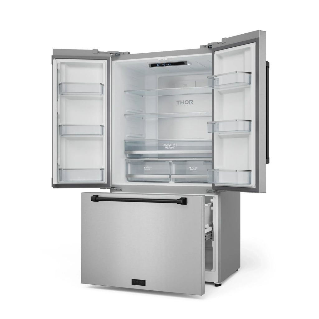Experience superior freshness with the 36 Inch 20.3 cu ft French Door Counter Depth Refrigerator in Stainless Steel/Black. With advanced cooling technology, spacious interiors, and customizable features, this refrigerator ensures your ingredients stay at peak freshness. Designed for durability and efficiency, it brings top-tier performance and style to your kitchen.