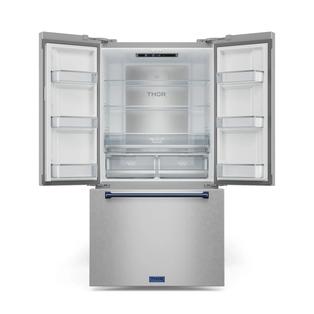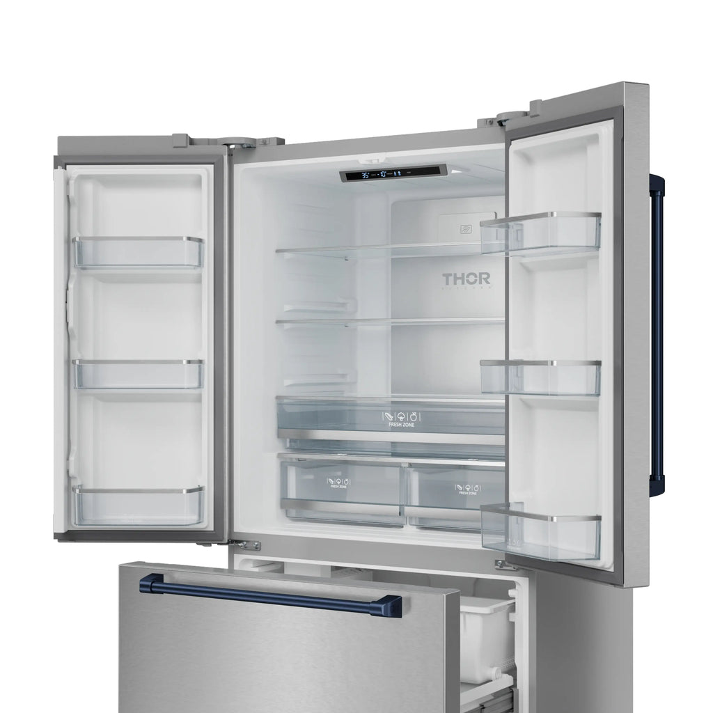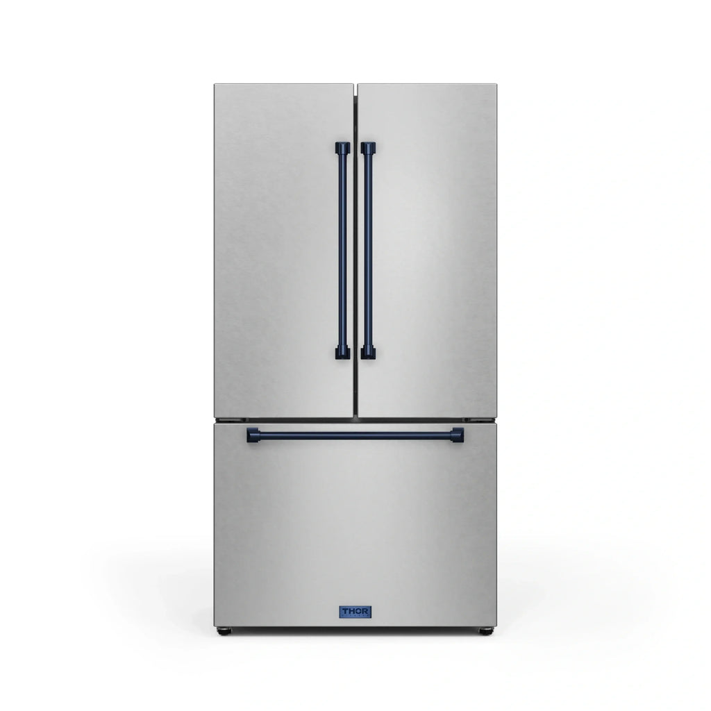 Experience superior freshness with the 36 Inch 20.3 cu ft French Door Counter Depth Refrigerator in Stainless Steel/Navy Blue. With advanced cooling technology, spacious interiors, and customizable features, this refrigerator ensures your ingredients stay at peak freshness. Designed for durability and efficiency, it brings top-tier performance and style to your kitchen.