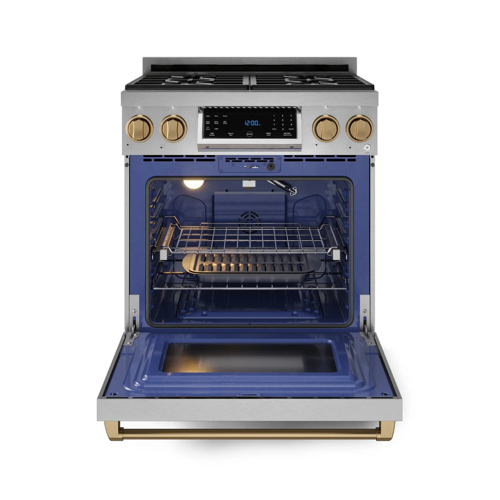 Designed for chefs who demand precision and power. With high-output burners, even heat distribution, and intuitive controls, this 30 Inch Gas range in Stainless Steel/Bronze elevates your cooking experience. Built for durability and performance, it brings restaurant-grade quality to your home kitchen, making every meal exceptional.