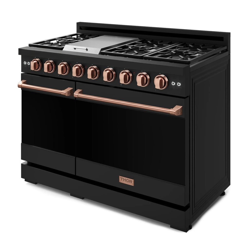 Designed for chefs who demand precision and power. With high-output burners, even heat distribution, and intuitive controls, this 48 Inch Gas range in Black/Rose Gold elevates your cooking experience. Built for durability and performance, it brings restaurant-grade quality to your home kitchen, making every meal exceptional.