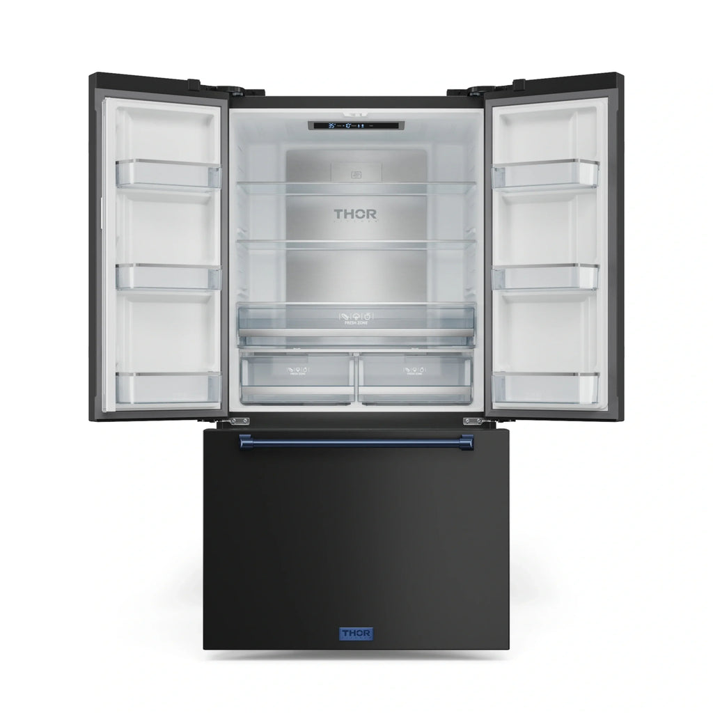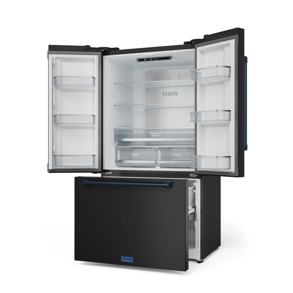 Thor Kitchen Gordon Ramsay Series 36-Inch 20.3 cu ft French Door Counter Depth Refrigerator with Ice Maker in Black with Navy Blue Trim (RF3621CTD00-BLU)