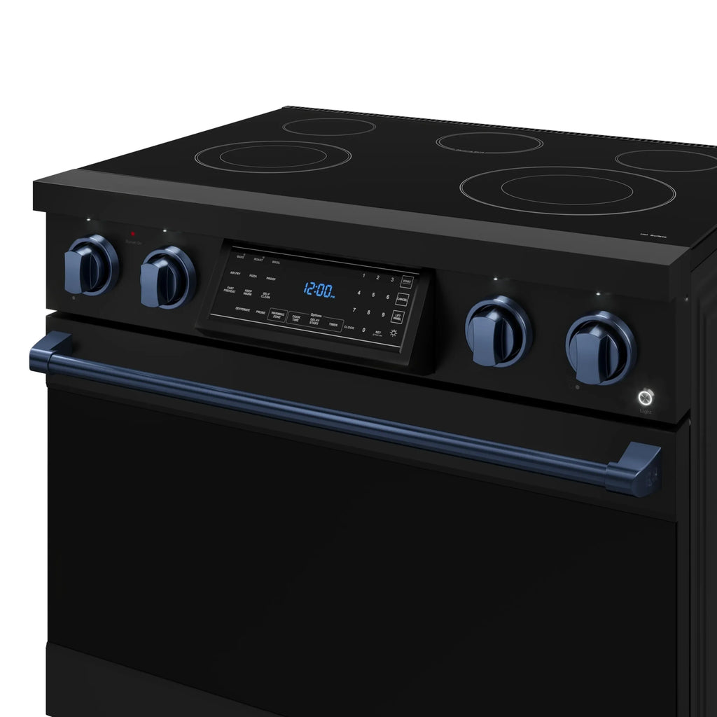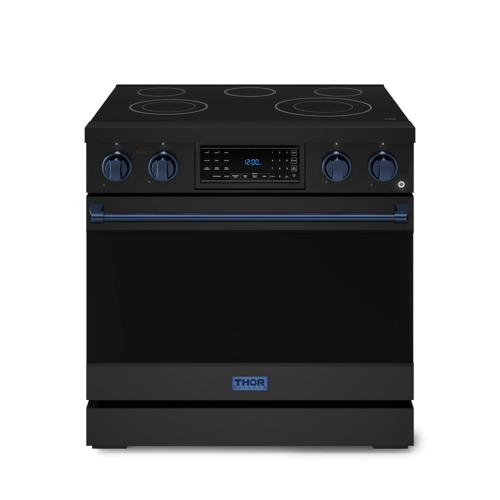 Thor Kitchen Gordon Ramsay Series 36-Inch Professional Electric Range with Tilt Panel Touch Control in Black with Navy Blue Trim (RSE36B-BLU)