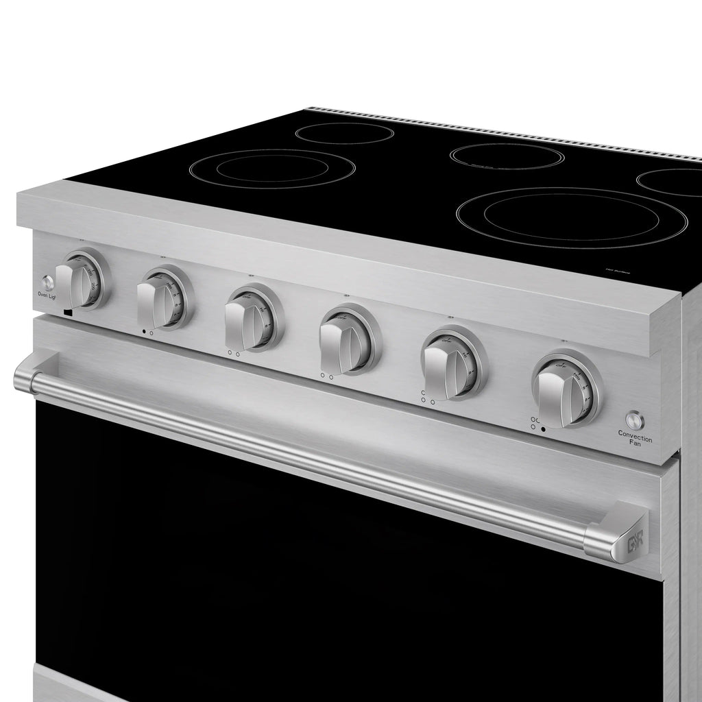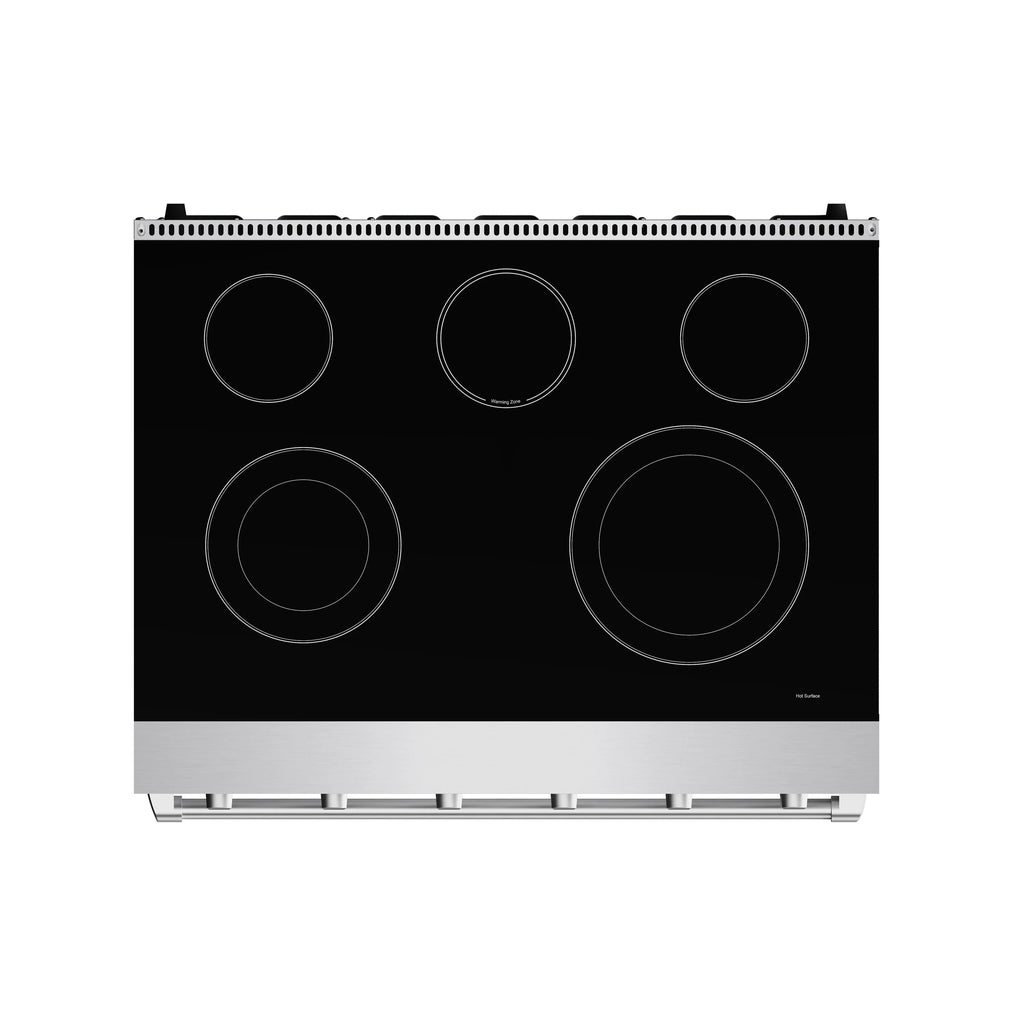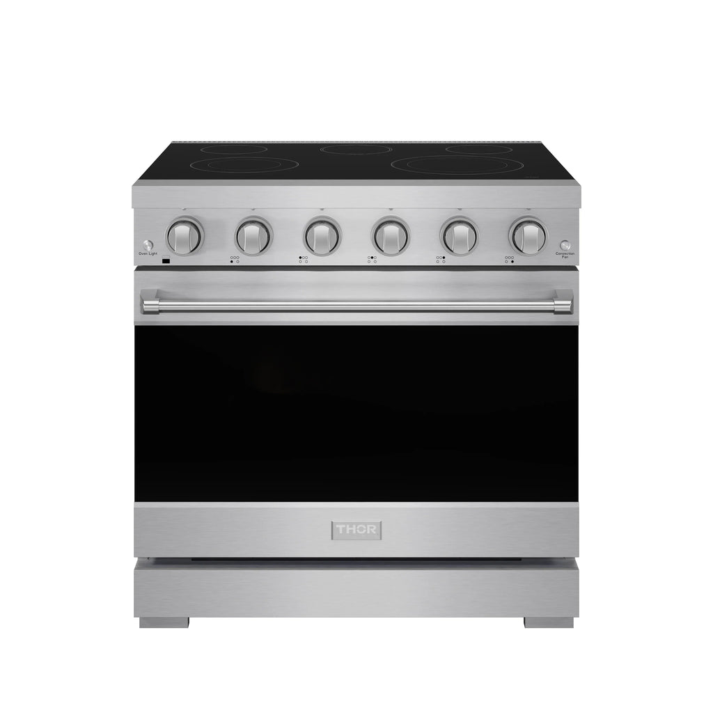 Experience professional-grade cooking at home with the Gordon Ramsay by THOR Kitchen 36" Professional Electric Range. Designed in sleek stainless steel with a durable glass-ceramic cooktop, this powerhouse features five versatile burners, a spacious 6.0 cu. ft. oven, and high-performance elements that deliver precise heat for everything from gentle simmering to intense searing. With thoughtful features like a telescopic rack, true convection, and a panoramic viewing window, this range combines style, functionality, and chef-inspired performance in one premium appliance.