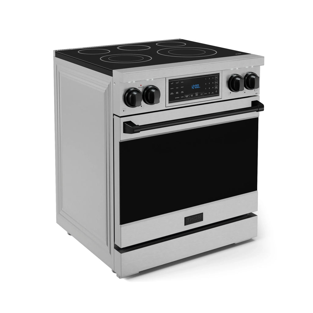 Designed for chefs who demand precision and power. With high-output burners, even heat distribution, and intuitive controls, this 30 Inch Professional Electric Range in Stainless Steel/Black elevates your cooking experience. Built for durability and performance, it brings restaurant-grade quality to your home kitchen, making every meal exceptional.