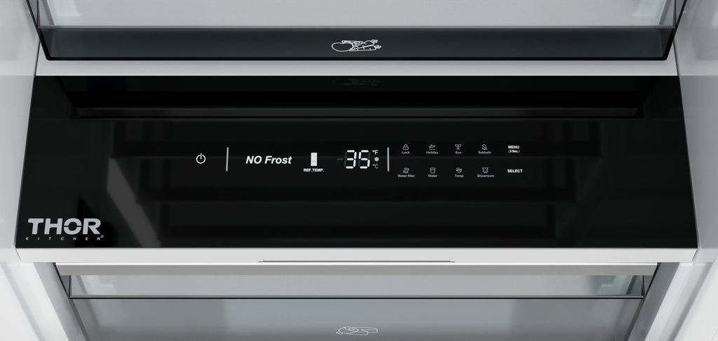 THOR Kitchen offers the power and performance of a premium professional appliance at a practical price. Thor’s XRF24CRF-SS Built-in Refrigerator Column delivers advanced performance and sleek design for a superior kitchen experience. Featuring Total No Frost technology, it eliminates ice and moisture build-up to keep your food fresh. The automatic ice maker produces up to 4 lbs. of ice per day, while fast freezing ensures your ingredients maintain their optimal taste and quality. Bright interior LED lighting provides clear visibility, and soft-close drawers add a touch of luxury. Operating at an ultra-quiet 43 dB(A), it ensures a peaceful kitchen environment. With a wide temperature range from +5°F (-15°C) to -11°F (-24°C) and versatile modes such as Sabbath, Holiday, and ECO.”