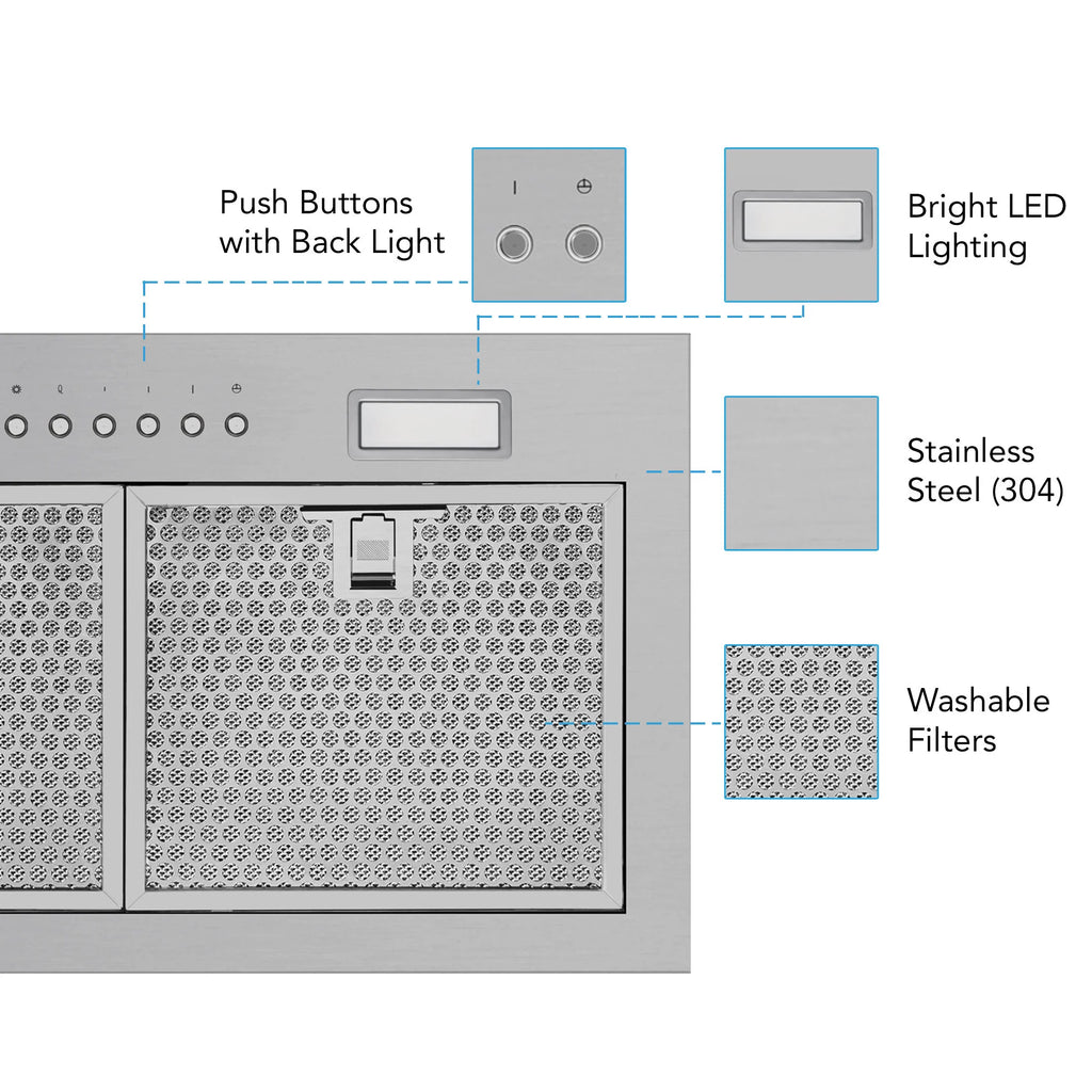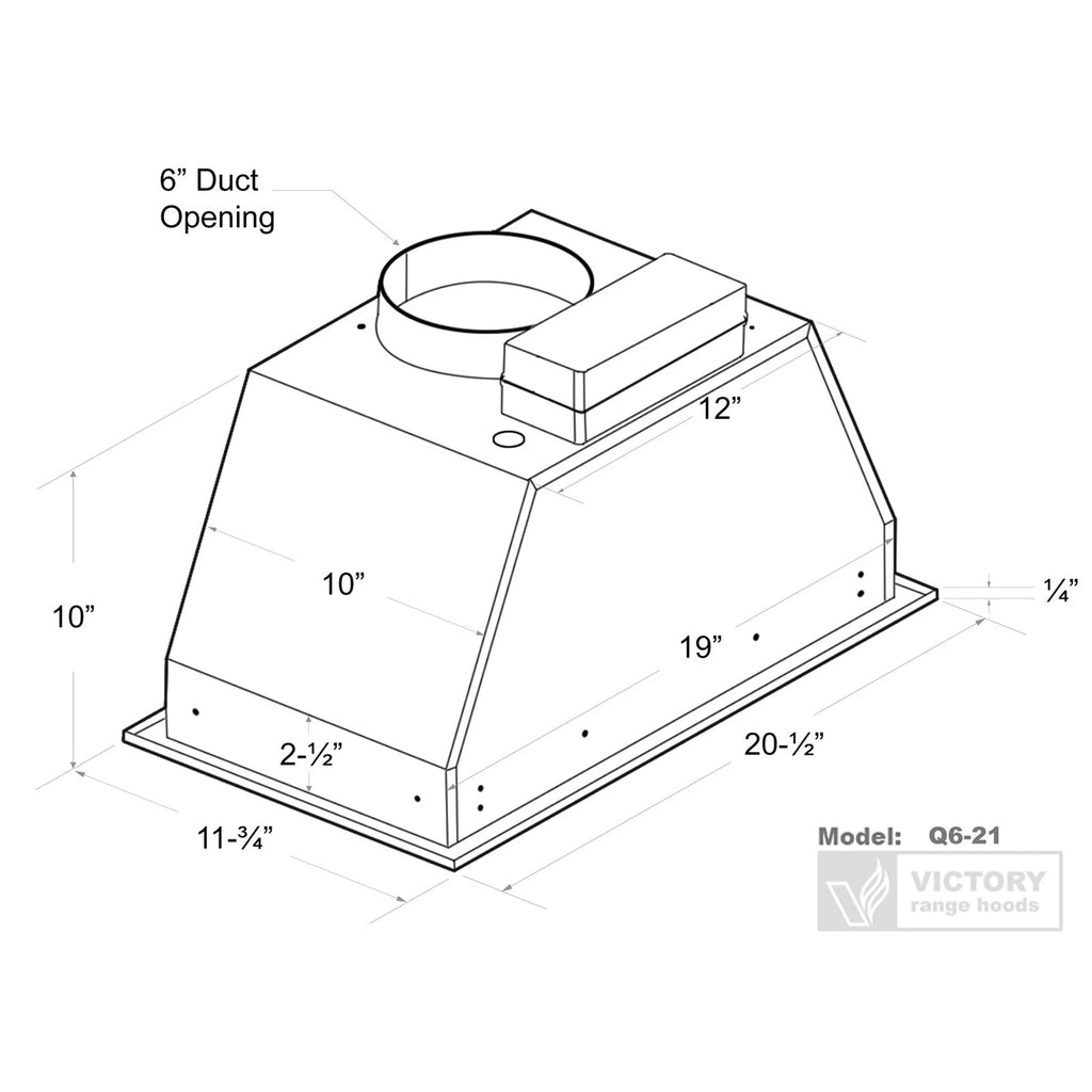 Bring a professional quality and performance to your kitchen with the Victory Q6. Made in Canada with an all metal 600 CFM blower and honeycomb aluminum filters effectively capture grease, smoke and odors while the bright warm LED lights provide great visibility over your cooktop. The standard 6-inch round duct and 12" depth make this range hood easy to install and compatible with standard cabinets. The integrated auto shut-off timer allows you to set the hood to run after cooking, ensuring lingering odors are cleared without needing to manually turn it off.